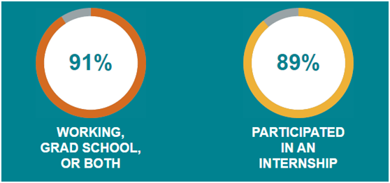 如圖1:(美利堅(jiān)大學(xué)官方網(wǎng)站提供學(xué)生就業(yè)率以及實(shí)習(xí)率官方數(shù)據(jù))