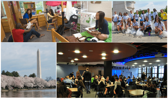學(xué)校位于美國首府華盛頓特區(qū)的西北區(qū)眾所周知的使館區(qū),離最新建的中國大使館距大學(xué)校園10分鐘路程,占地95英畝,附近多為外交人員住所,離DC市中心不遠(yuǎn),也是DC最安全的地區(qū)之一。校內(nèi)有14棟教室,藏書超過七十八萬的圖書館并與DC的圖書館相互連結(jié),學(xué)校還有五萬瓦的廣播中心,尖端科技的語言資源中心、科學(xué)實(shí)驗(yàn)室,24小時開放的電腦教室,2間視訊會議禮堂,大多數(shù)的教室都具備了最先進(jìn)的多媒體簡報(bào)功能,表演廳、綜合體育館等。學(xué)生可以參加多種的學(xué)生社團(tuán)、兄弟會、姊妹會及各種的運(yùn)動類社團(tuán)。