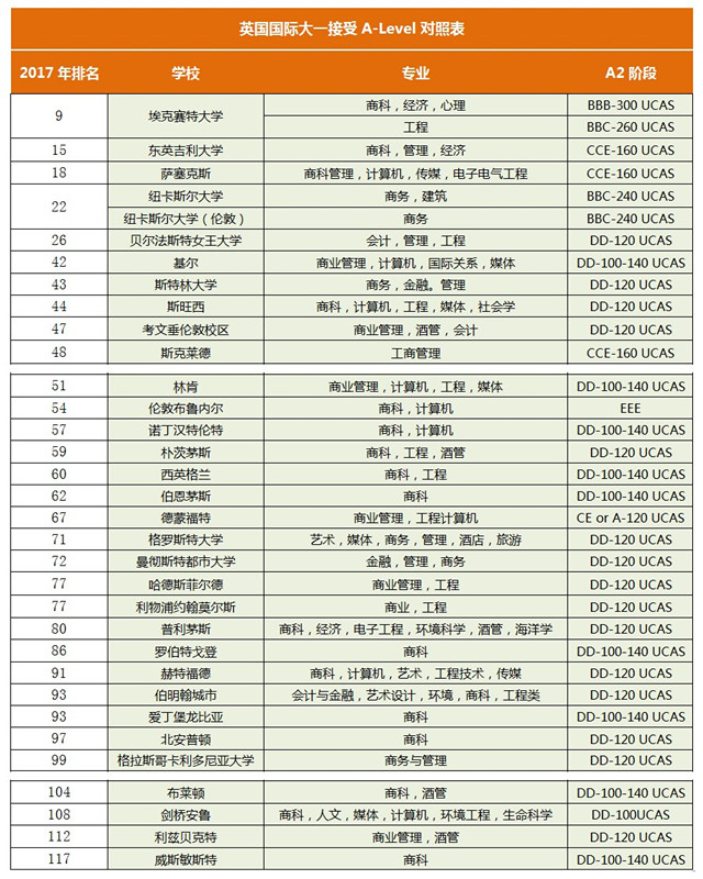現(xiàn)在,越來(lái)越多學(xué)生選擇在國(guó)外或國(guó)內(nèi)學(xué)A-Level課程,以便擴(kuò)大本科申請(qǐng)學(xué)校,這樣不但可以免去預(yù)科課程,也可以申請(qǐng)牛津、劍橋等頂級(jí)名校。但很多學(xué)生因?yàn)椴涣?xí)慣英國(guó)教育體制或語(yǔ)言不達(dá)標(biāo),成績(jī)并不理想?,F(xiàn)小編整理出“英國(guó)國(guó)際大一接受A-Level對(duì)照表”,讓各位學(xué)子免去預(yù)科苦惱,照樣直讀大一!
