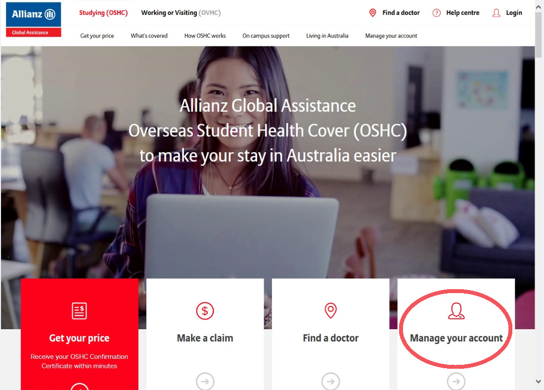 01 登錄保險(xiǎn)公司官網(wǎng)www.allianzassistancehealth.com.au 然后點(diǎn)擊Studying,如下圖所示