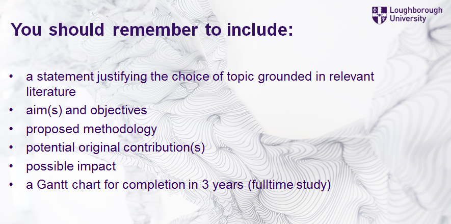 英國的博士基本申請材料和研究生大致相同,學(xué)位證和畢業(yè)證呀,成績單呀,個(gè)人陳述呀,個(gè)人簡歷呀,兩封推薦信呀,還有語言成績呀。除了這些,博士申請?zhí)赜械模彩亲钪匾木褪茄芯繄?bào)告了。研究報(bào)告是體現(xiàn)你對(duì)即將要在博士階段研究課題的想法介紹,是即將接受做你導(dǎo)師的教授的前期印象。是顯示你研究的能力和潛力,也是錄取的關(guān)鍵因素。下面我們來看看全英前10的大學(xué)拉夫堡大學(xué)對(duì)于申請博士的研究報(bào)告的小建議: