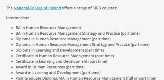 作為CIPD在英國(guó)和愛(ài)爾蘭最大的course provider,愛(ài)爾蘭國(guó)家學(xué)院開(kāi)設(shè)了數(shù)量最多的人力資源管理課程,涵蓋了本科、碩士各個(gè)級(jí)別,70%以上的愛(ài)爾蘭HR經(jīng)理級(jí)別都曾在愛(ài)爾蘭國(guó)家學(xué)院接受過(guò)專業(yè)教育: