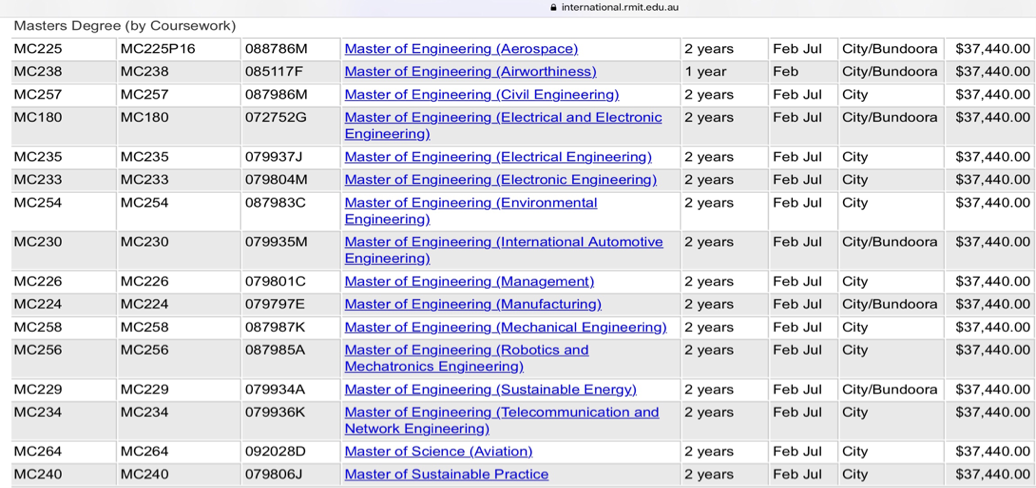 6、課程選擇鏈接:https://www.international.rmit.edu.au/info/programfeesprint.asp?programyear=2020