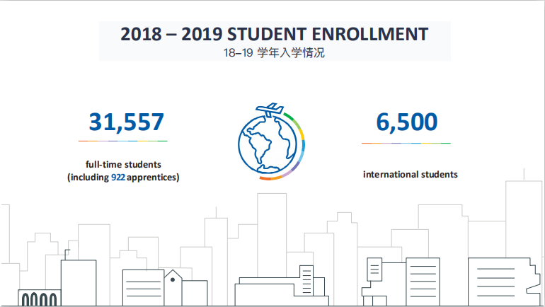 01、2018-2019學年共有 31,557 名全日制學生(含約 6,500 名國際留學生)和 65,828 名業(yè)余制學生。,較2017-2018年全日制注冊學生數(shù)額有顯著的增長,國際生的比例保持穩(wěn)定,繼續(xù)為學生提供高質(zhì)量的教學環(huán)境。