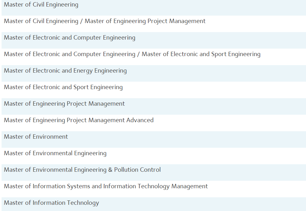格里菲斯大學(xué)的專升碩項目是澳洲銜接碩士課程最廣最多的橋梁課程。其課程主要銜接是格里菲斯商學(xué)院,工程和信息學(xué)院,視覺藝術(shù)學(xué)院的碩士課程。
