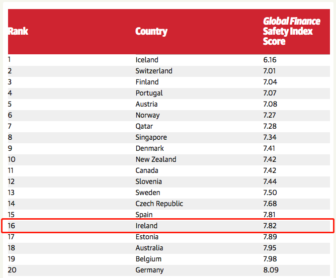 作為全球七大中立國之一,愛爾蘭政局向來十分穩(wěn)定。在“2019全球最安全國家”排名中,愛爾蘭位居十六,是歐洲犯罪率最低的國家之一。