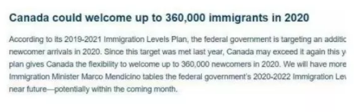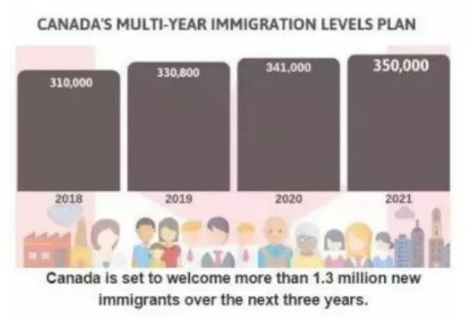 根據(jù)加拿大《2019-2021年移民計劃》顯示,聯(lián)邦政府的目標(biāo)是到2020年新增341,000名移民。但是這一目標(biāo)已于去年實現(xiàn),加拿大今年可能會再次超越。實際上該計劃顯示加拿大將在未來三年內(nèi)歡迎超過130萬新移民。