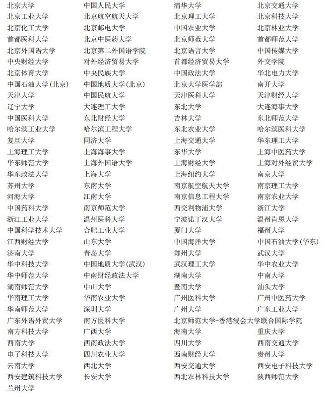 錄取最低分數(shù)線為400分的院校名單(136 所)