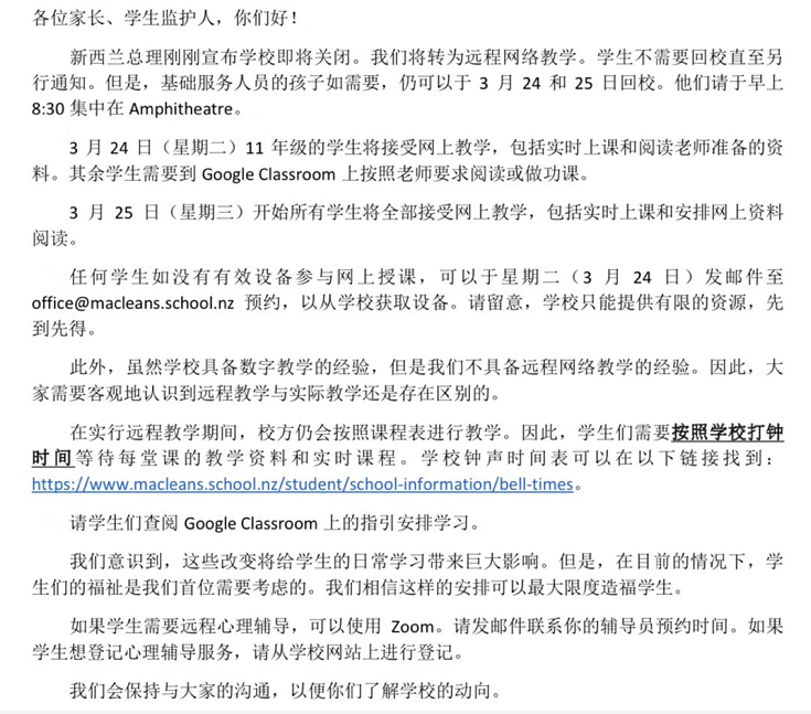 1. 新西蘭校區(qū)明天開始關(guān)閉4周,面對面授課暫停。學(xué)生不要去校區(qū)。