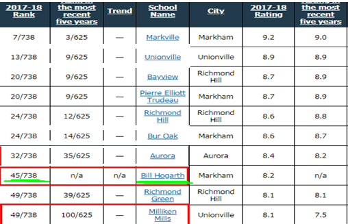哈爾頓教育局排名安省前五十且尚有名額的學校