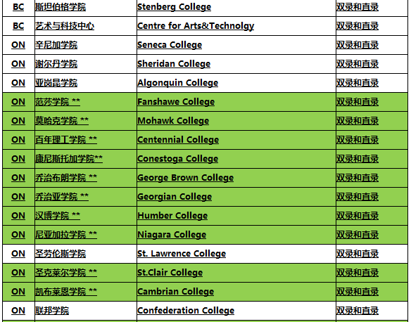 加拿大學(xué)院合作總表:(備注**學(xué)院免申請費活動中)