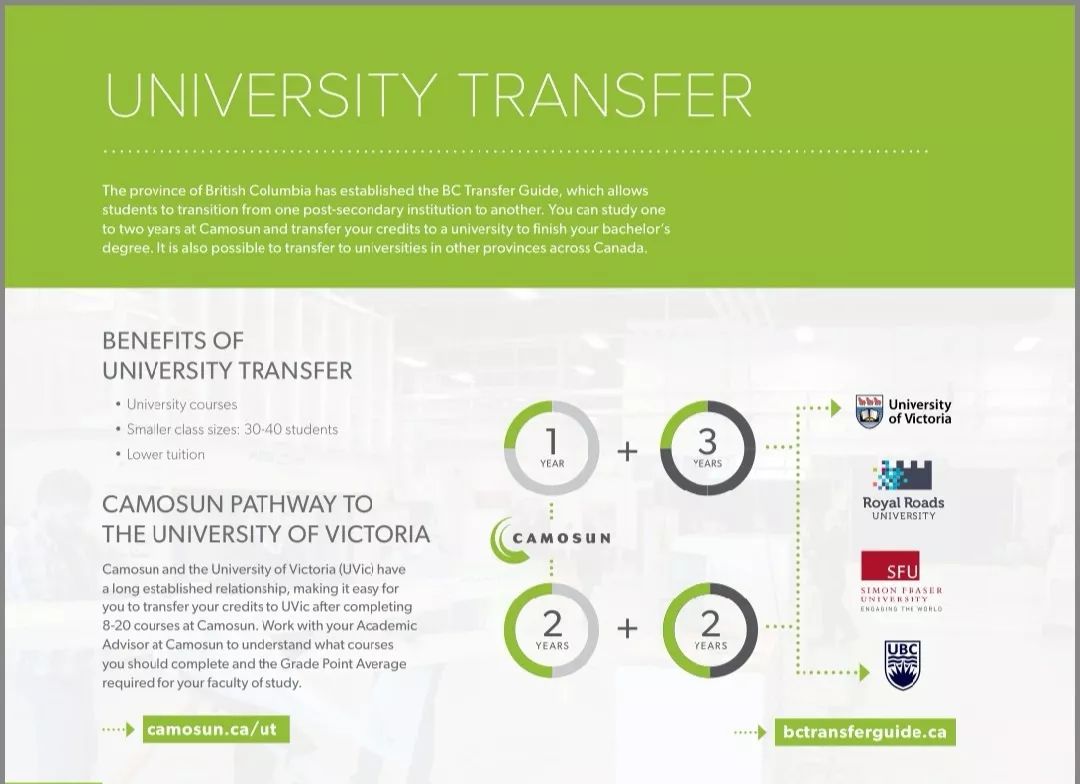 作為教學(xué)質(zhì)量常年位居世界前列的發(fā)達國家 ,加拿大除了有眾多優(yōu)秀的大學(xué),更有開設(shè)豐富專業(yè)的學(xué)院college。絕大多數(shù)學(xué)院都開設(shè)了通往加拿大名牌大學(xué)的大學(xué)轉(zhuǎn)學(xué)分課程(university transfer),可以說是用另一個更簡易的方式直通名校了。