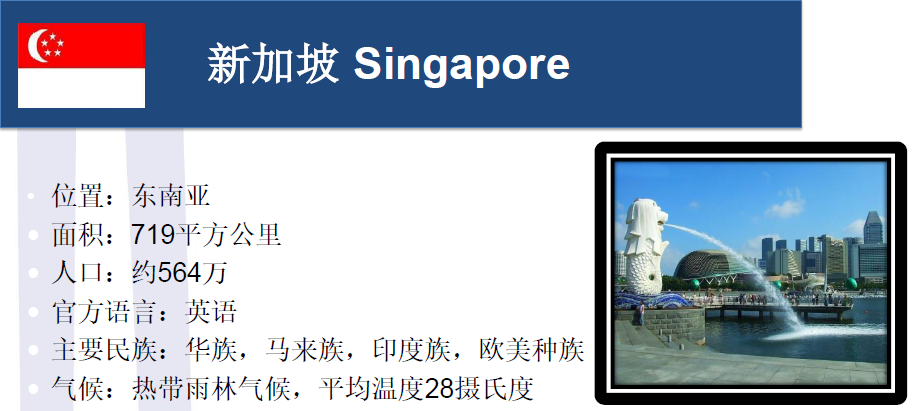 新加坡政府工作語言是英語,全民英語素質(zhì)好,加上77%的華人,形成特殊的雙語環(huán)境,為中國學生提供了一個極其容易適應的語言環(huán)境,除此之外,國內(nèi)到新加坡航班一般5-7個小時即可到達。