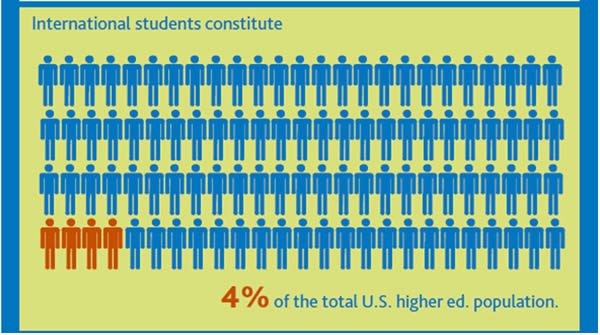 美國(guó)高等教育國(guó)際學(xué)生比例4%